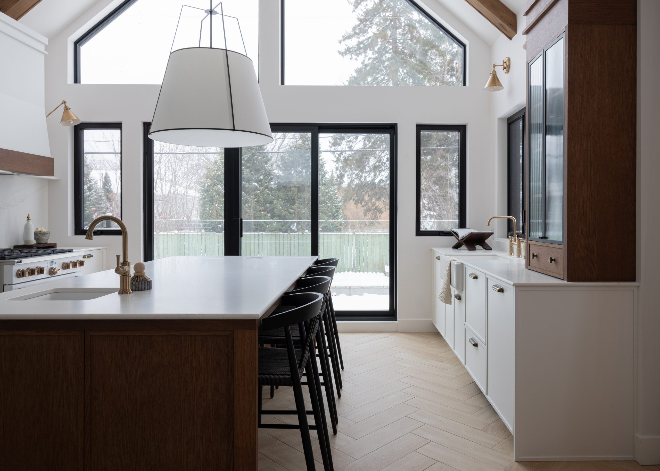 Issue d’un projet d’agrandissement visant à accueillir une cuisine spacieuse, cet aménagement se structure autour d’un îlot en chêne blanc teint à la fois convivial et fonctionnel. Volumes bien définis, contrastes marqués, matières nobles : l’espace trouve son équilibre entre sobriété et chaleur. Portée par une esthétique mid-century et des influences de voyage, cette cuisine conjugue élégance et efficacité dans un espace pensé pour la vie de famille.